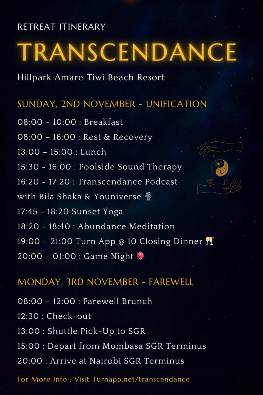 Our retreat itinerary is out, see what we have in store for you over the 4 days by the ocean